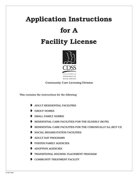 Online PDF LIC 281 (09/04) - Application Instructions for A Facility License PDF Hardcover ManyBooks